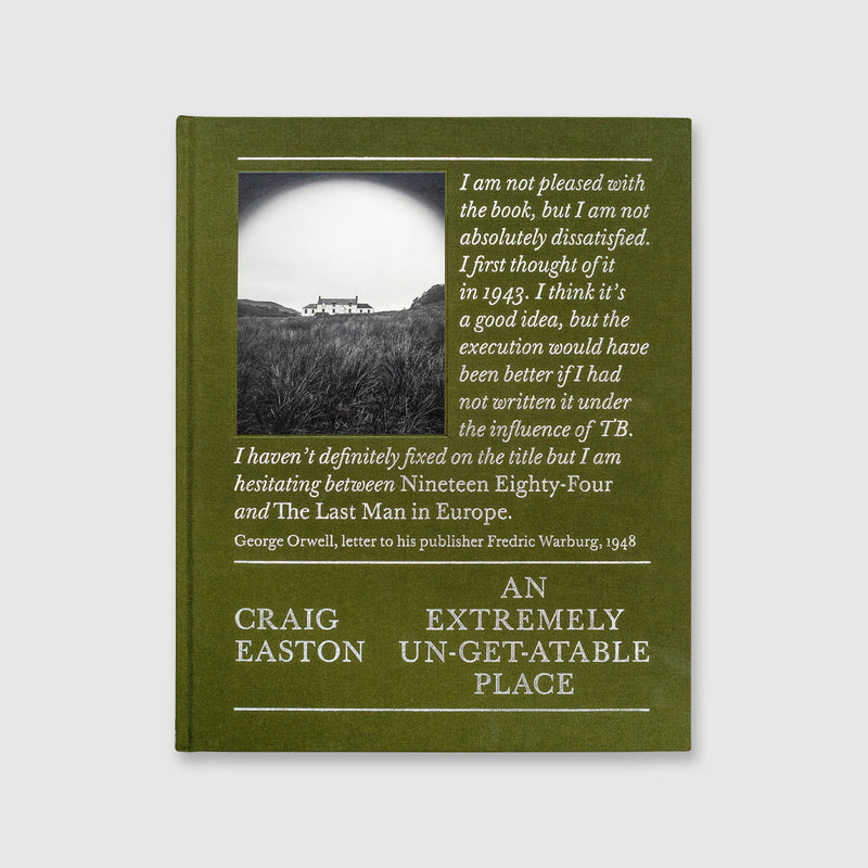 An Extremely Un-get-atable Place  is a lyrical reimagining of the time that writer George Orwell lived at Barnhill, a remote farmhouse on the Isle of Jura in Scotland. It was here that Orwell wrote his landmark book   Nineteen Eighty-Four—a dire warning of the dangers of totalitarianism and political despotism. Photographer Craig Easton was invited to stay at Barnhill—largely unchanged since Orwell’s time—where he made a series of landscape and still life images. In Easton’s new book, these photographs are presented alongside extracts from Orwell’s letters and diaries written on the island.