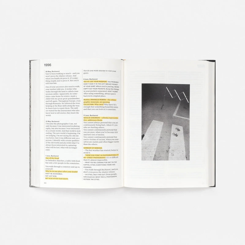 Distilled from sixty‑nine journals kept over the course of fifty‑plus years, Josef Koudelka: Diaries offers a look inside the mind and artistic process of the iconoclastic Czech photographer renowned for a life in exile and legendary projects on the Roma, the 1968 Soviet-led invasion in Prague, and the devastating impact humans have on the landscape. Facsimile pages from the diaries, along with images by the photographer, including self‑portraits, lend the volume an immediacy and authenticity. As curator Tomáš Pospěch writes, “Koudelka’s diaries are a ‘cookbook’ of classic photography. He associated with the most renowned photographers. His notes sum up his rich experience, including with the now‑vanishing technology of analog black‑and‑white photography. His remarks, quips, and stories reappear, just as he repeatedly made resolutions, affirmed the rules he had adopted, and recalled earlier events and dreams.” Diaries is a perfect companion to Josef Koudelka: Next (2023), the visual biography by Melissa Harris.