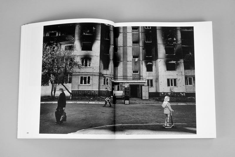 In UKRAINE, photojournalist Eddy van Wessel documents a raw account of three years of war in Ukraine through (analogue) photography and firsthand testimonies. With decades of experience covering conflict zones, he focuses on what war means for those living through it – the soldiers on the front lines, civilians sheltering in devastated towns and cities, and those forced to flee. His images capture the visible destruction and the psychological and emotional toll of prolonged violence, making this book a visual and narrative testimony with a complex and layered depiction that is reflecting on the human cost of the largest war in Europe since World War II. It explores displacement, survival, and the boundaries of humanity in times of crisis. Where does humanity end and inhumanity begin? How do individuals maintain dignity and resilience under constant threat? What does survival look like when basic needs – and life itself – are no longer guaranteed?