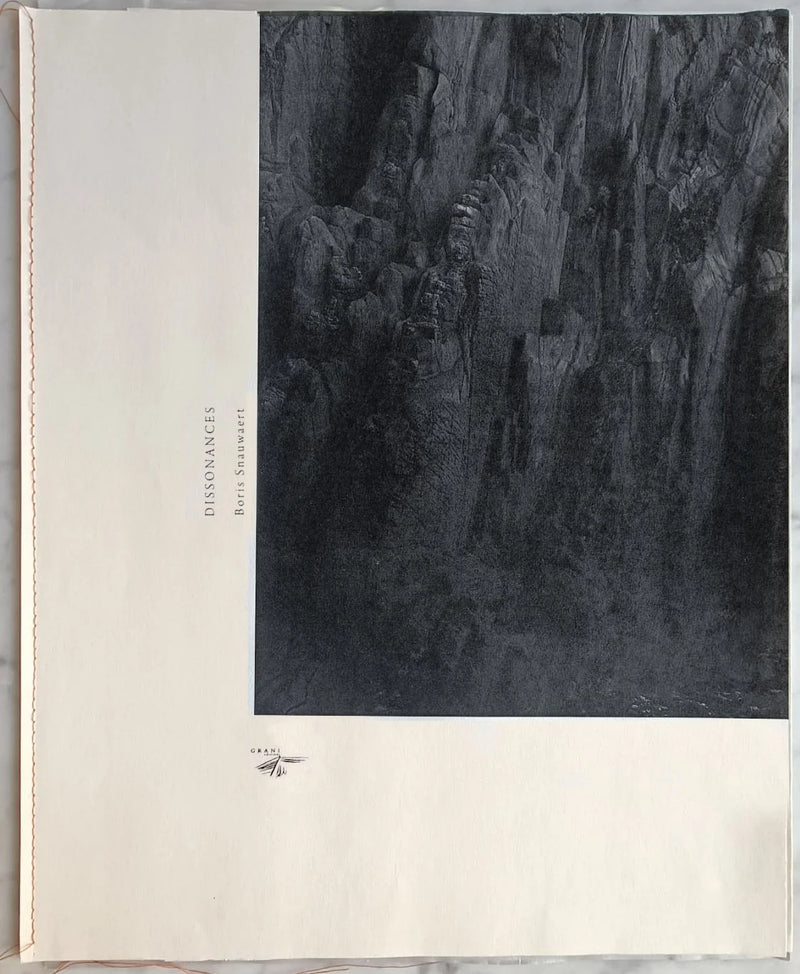 A portfolio containing three sewn booklets that investigate three distinct worlds: Night, Forest, and Light. More than 60 large-format black-and-white photographs, presented with varied openings and materials.