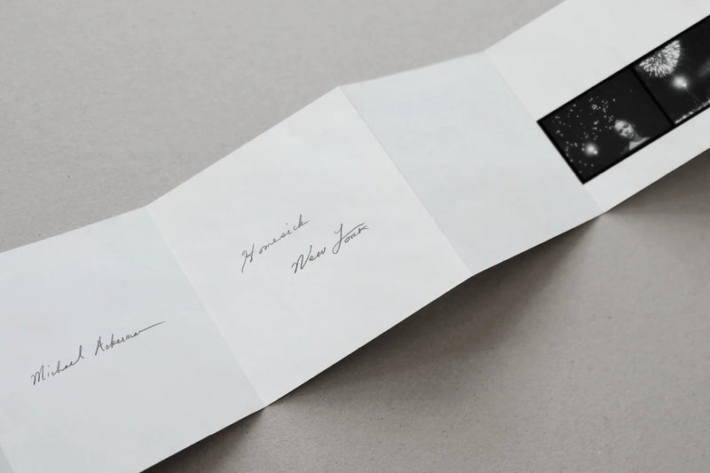 A distinct element of the book lies in its use of test strips — photographic leftovers from the printing process, left soaking for weeks in chemical solutions. Once dried, they bear marks of decay and transformation, ghostly echoes of the original image. In the book, reproductions of these spectral fragments are woven like relics of a memory in flux — imperfect, beautiful, and haunting — and each is carefully torn and glued in by hand after the printing process. In one of the collector’s editions, an original, signed strip is also included as an additional piece.